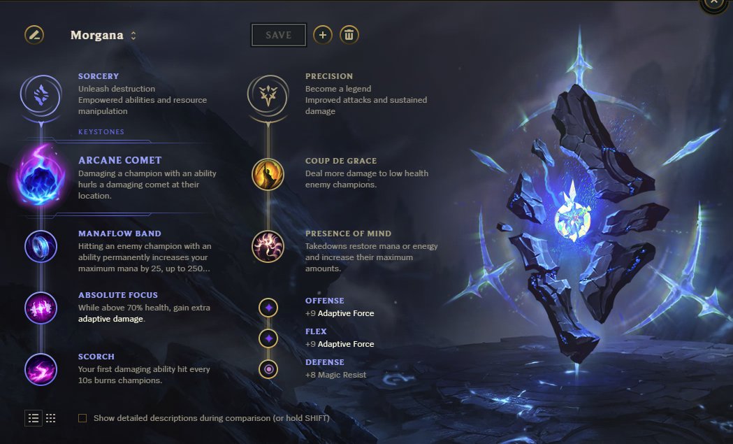 The Best Morgana build guide by OPGG - Providing Morgana build with the highest win and pick rate. Counter Sett Win Ratio 5520. Morgana build e runas de league of legends mid a morgana mid é uma campeã de early mid game.